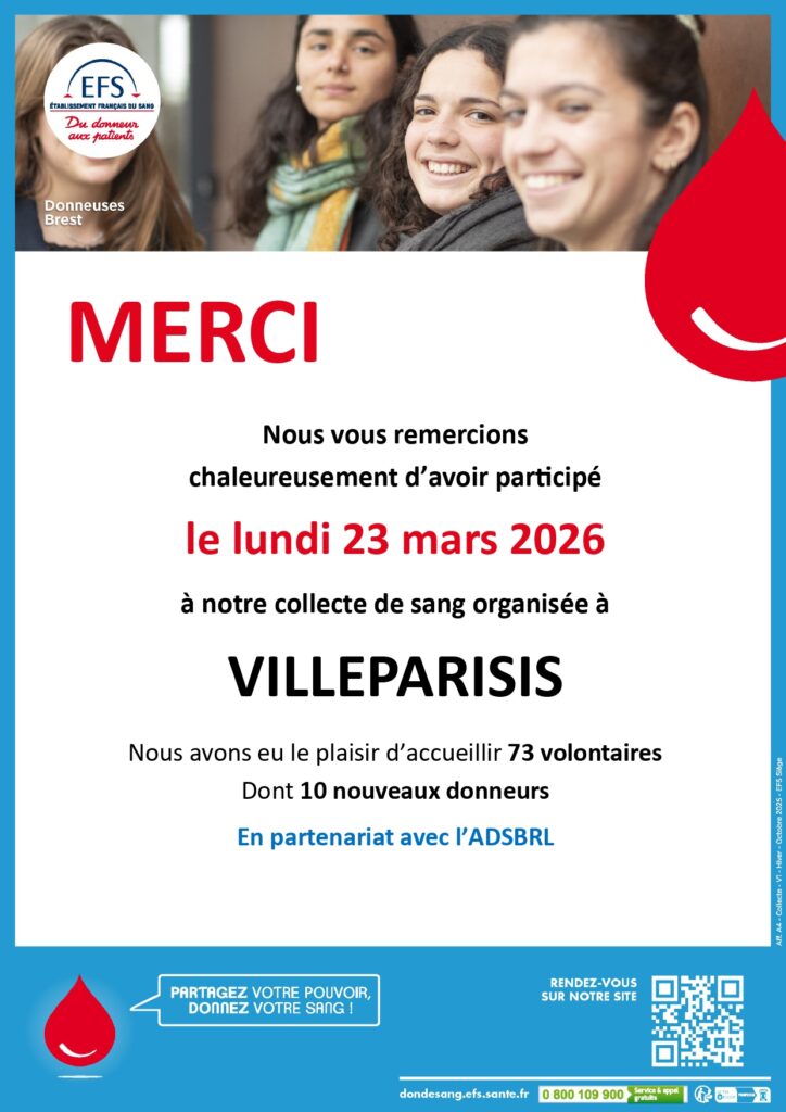 60 donneurs ont été prélevés dont 10 primo donneurs. Merci à tous!
